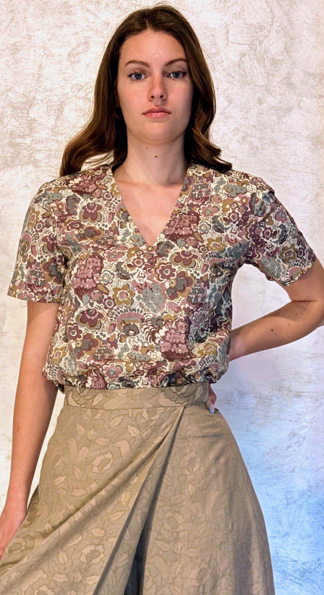 Freschissima blusa in cotone liberty. Questo modello ha solo le pince al seno, in vita nulla, pertanto scende con una linea diritta( per le persone più magre sta molto bene portata con una cinturina o blousata nel pantalone o gonna).