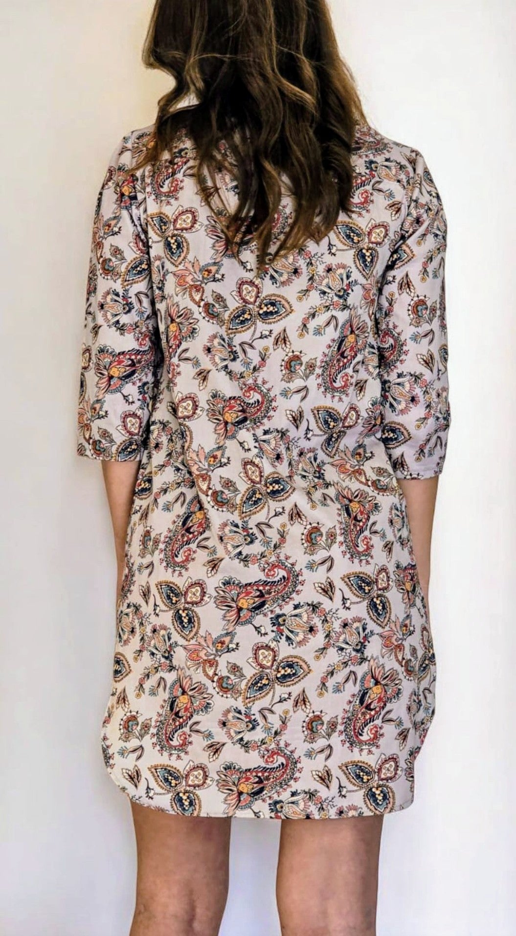 La modella è alta 1,80 m, è una tg. 42 di seno ed indossa la tg. S lunghezza Media fantasia cashmere (capo campione disponibile in tre giorni lavorativi per la spedizione. le misure del capo campione sono le seguenti: crf. seno 96 cm, crf. vita 100 cm, crf. fianchi 102 cm, lunghezza manica da spalla a fondo 43 cm, lunghezza tunica da attaccatura spalla-collo a fondo 95 cm, altezza spacchi nei fianchi 20 cm).